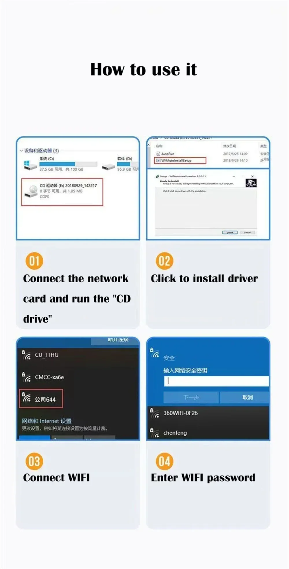 (2)600Mbps Chipset:RTL8811,2.4G&5G,USB2.0 Interface,driver-free for Win8 and above system.